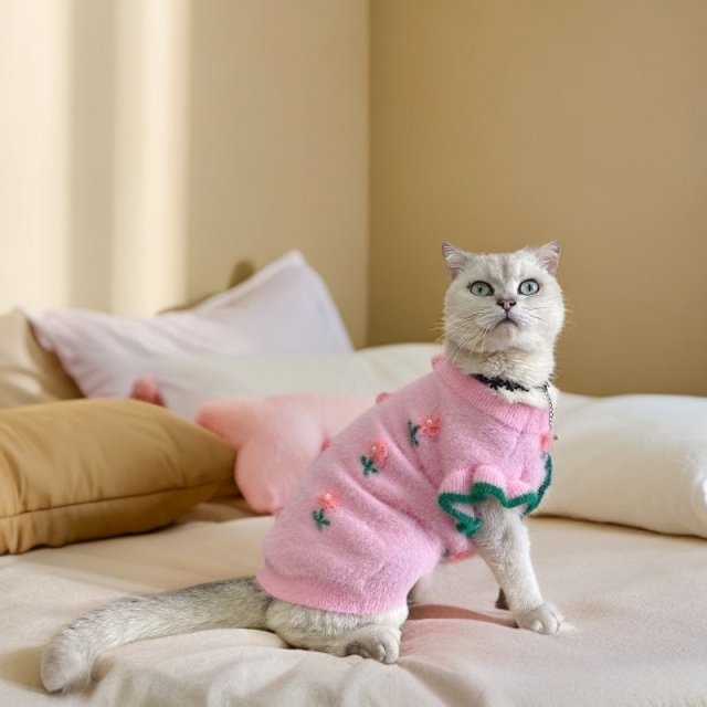 This sweater is best used during the autumn and winter months when your pet needs extra warmth indoors or outside. Its thickened wool fabric makes it special compared to regular pet clothing—your furry friend stays warm without overheating. The cute floral design and soft texture turn everyday wear into something charming and comfortable. Whether lounging at home, walking in the park, or visiting friends, your pet will stay cozy and look adorable.