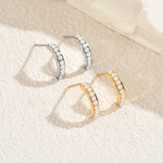 Minimalist Gold Imitation Pearl Stud Earrings for Women