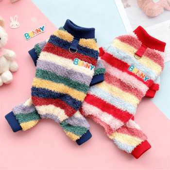 Winter Plush Rainbow Striped Pet Jumpsuit